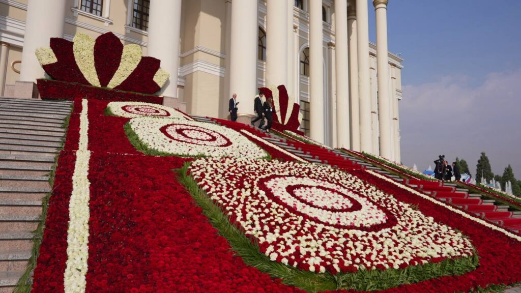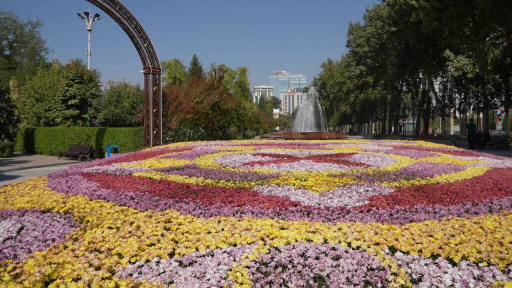 Осенний Душанбе расцвёл. Перед саммитом в столице высадили более двух миллионов сезонных цветов, некоторые привезли даже из Голландии. Товары здесь привозные. Даже орехи порой импортные. Фрукты, да — свои. Напоказ перед лидерами выложили целые горы.