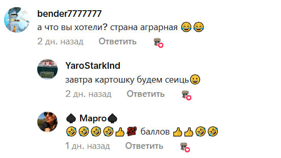 Не обошлось без традиционного белорусского юмора: «А что вы хотели? Страна аграрная», «Встречают с хлебом-солью, а вы с помидорами», — шутят комментаторы.