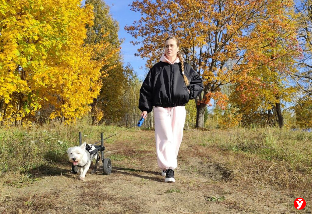 Кристина Хаткевич из города Марьина Горка с детства хотела домашнего питомца, а именно собаку. Семь лет назад в ее жизни появился любимец Вест, который стал для девушки смыслом жизни. И все было бы хорошо, если бы год назад собака серьезно не заболела, впоследствии чего у нее отказали задние лапы. Сегодня каждый день, час, минута свободного времени Кристины прикованы к любимому другу. Девушка верит, что у ее Вестика обязательно все будет хорошо.