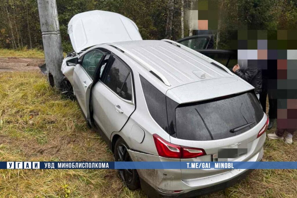 В Борисовском районе на М-1 автомобиль врезался в столб