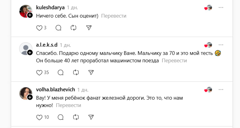 Инициатива национального перевозчика нашла самый теплый отклик у пользователей. В комментариях закипела жизнь: родители благодарили за отличную идею для детского досуга. «Спасибо за наводку! Ребенок будет счастлив», — писали одни родители, а другие восторженно добавляли: «Вау! У меня ребенок фанат железной дороги. Это то, что нам нужно!».
