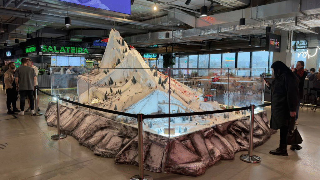 Центральным элементом декор стала впечатляющая «Рождественская деревня» — арт-объект, наполненный детализированными композициями, который находится на 4 этаже.