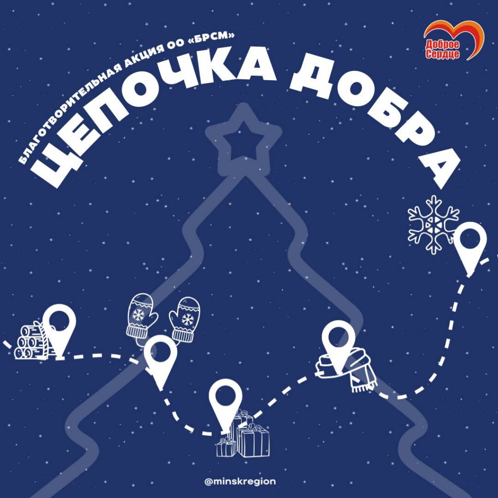 Минский областной комитет ОО «БРСМ» инициировал проведение благотворительной акции «Цепочка добра», которая направлена на поддержку и заботу о старшем поколении. Каждый может принять участие и подарить тепло, внимание и реальную помощь тем, кто в этом особенно нуждается.