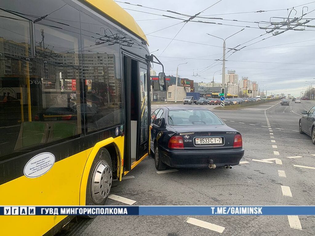 В Минске водитель без прав проехал на красный и столкнулся с автобусом