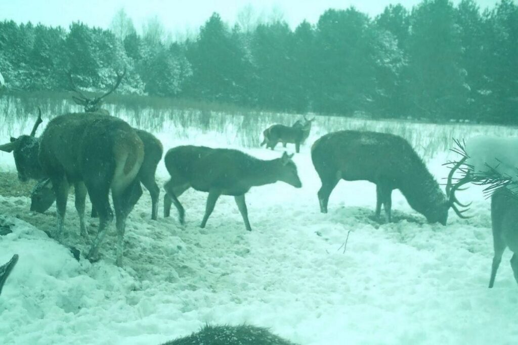 Что происходит в зимнем лесу? Фотоловушки зафиксировали очереди копытных у кормушек под Солигорском