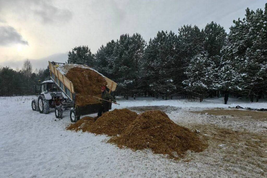 После циклона «Улли» специалистам пришлось расчищать от снега подходы к кормовым площадкам, восстанавливать логистику лесных дорожек, чтобы доставить новые порции провизии. Регулярный подвоз и выкладка кормов — зерна, сена и других видов подкормки — обеспечивают животных жизненно необходимыми ресурсами.