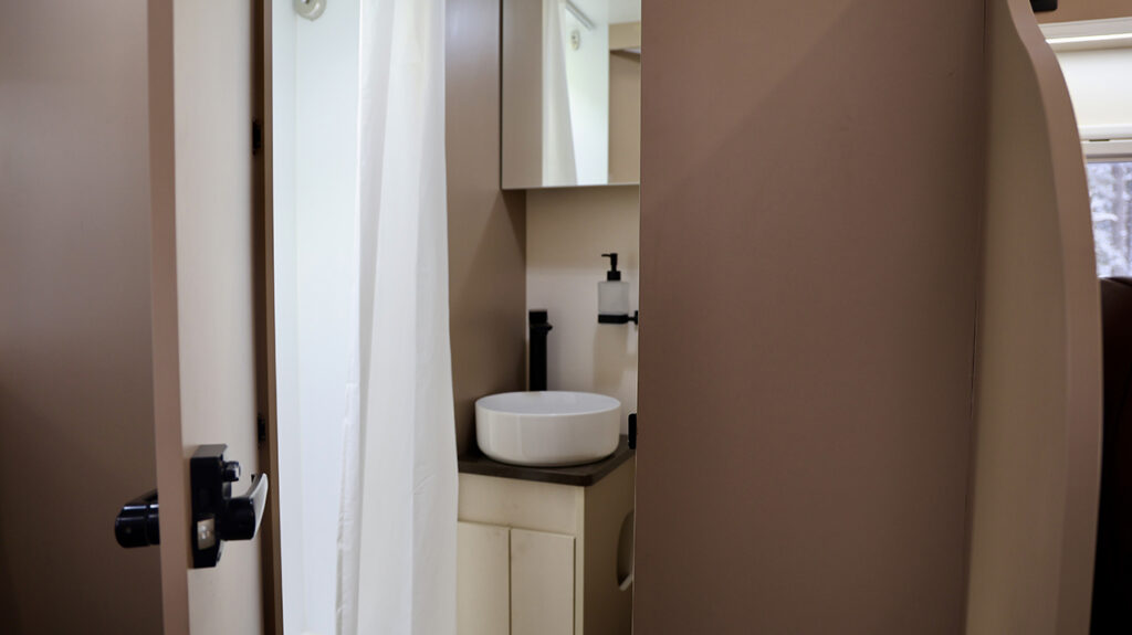 Для повседневных нужд оборудован полноценный кухонный блок и удобная обеденная зона. Существенным преимуществом кемпера стал отдельный санитарный узел с душевой кабиной, что редко встречается в автомобилях данного класса. Снаружи предусмотрены крепления для перевозки двух велосипедов.