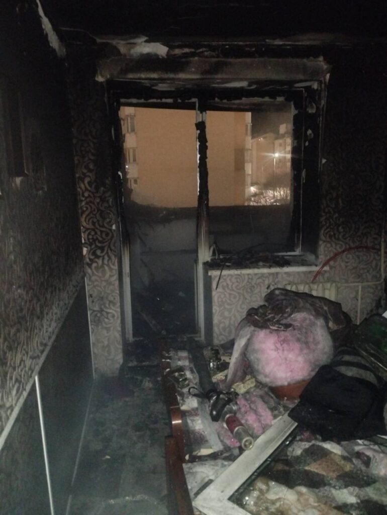 В результате возгорания полностью выгорел балкон одной из квартир. По предварительным данным, огнём была повреждена балконная рама, а также закопчены стены комнаты, прилегающей к балкону.