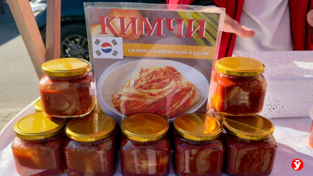 На рынке много фермерских продуктов, аккуратно упакованных в контейнеры. Например, вакуумированное мясо утки продают по 14 рублей. Для любителей острого есть кимчи — банка обходится в 15 рублей.