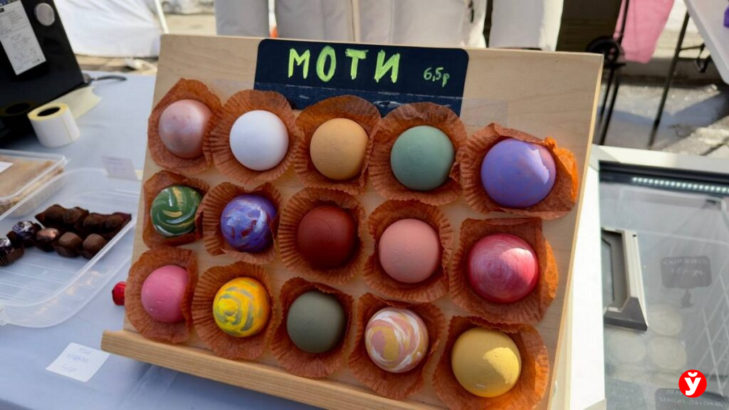 Некоторые позиции разлетаются ещё до полудня. Так произошло, например, с популярным десертом моти — к нашему приходу его уже не осталось. Продавцы рассказали, что обычно предлагают до 15 разных вкусов, а стоит один десерт 6,5 рубля.