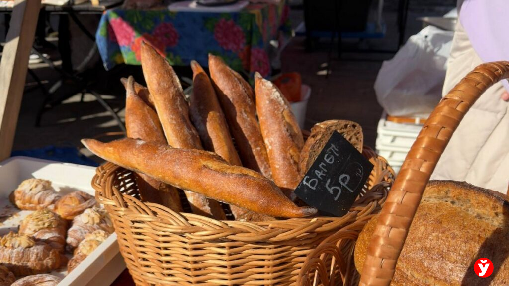 Хлеб на рынке тоже фермерский, с хрустящей корочкой. Цена начинается примерно от 4 до 6 рублей за буханку.