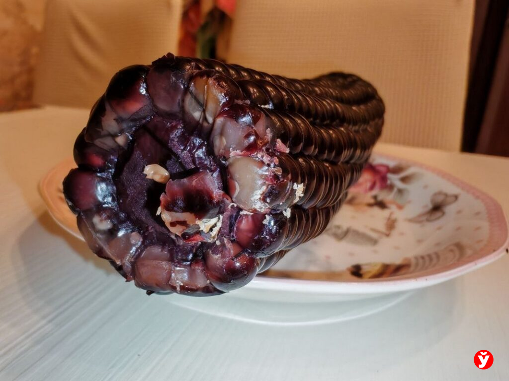 Дегустация заняла всего минуту — я не осилила и половины кусочка. Ни сладости, ни нежности, ни того самого взрыва молочного сока, за который мы любим желтую кукурузу. Здесь просто непонятная мякоть: суховатая, пресная. И всё же заставила себя доесть до последнего зернышка: мысль о пользе овоща не давала покоя. Всё-таки в этой черной кукурузе столько всего нужного: антиоксиданты, белок, минералы — жалко их отправлять в мусорку.