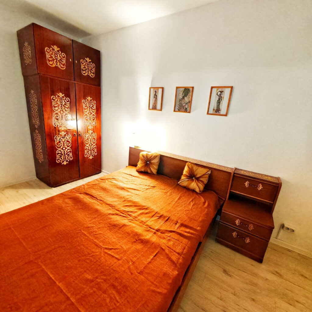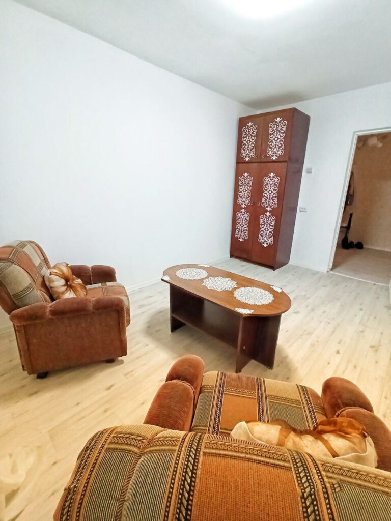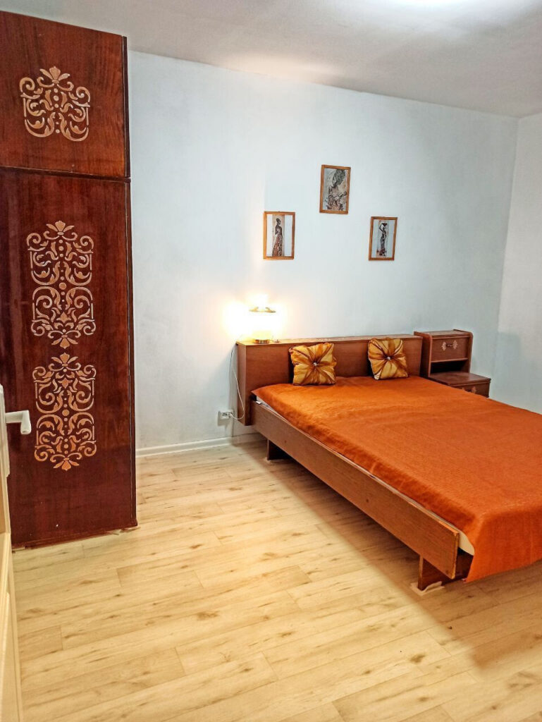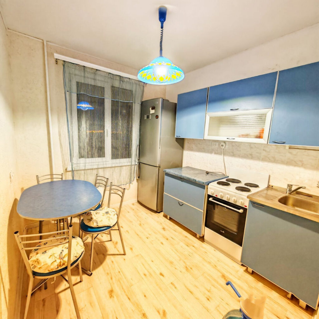 Жилье трехкомнатное с минимальным набором мебели — диван, кресла, кровать и шкафы для одежды и посуды. Имеется телевизор и интернет. В кухне есть все необходимое для приготовления пищи: газовая плита, холодильник, раковина, рабочее пространство и даже кулер с питьевой водой.