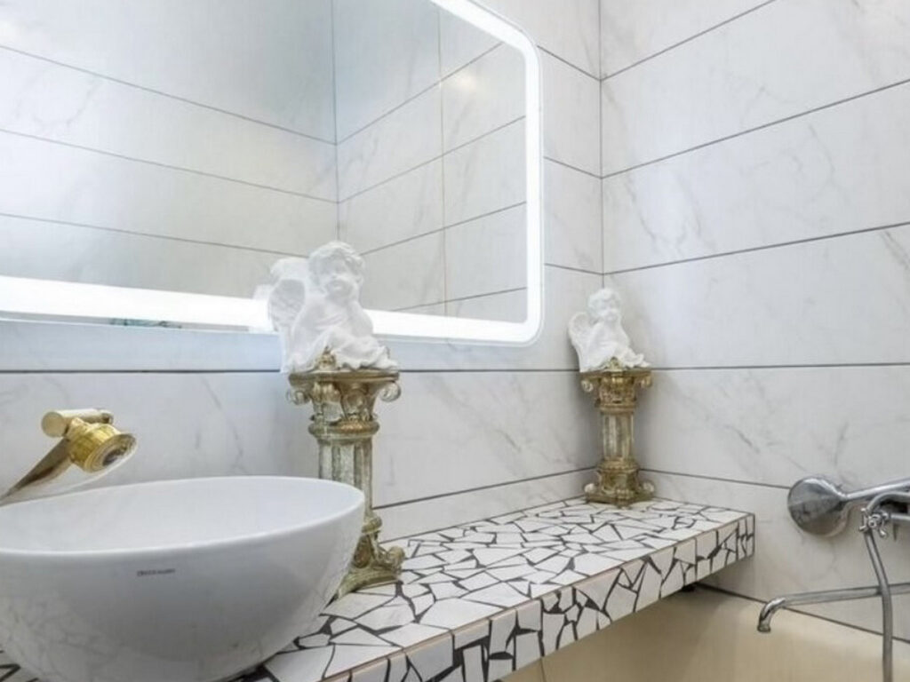 Внутреннее оформление этой квартиры выполнено в классическом стиле, с акцентом на элементы барокко. Здесь можно увидеть позолоту, роскошные ламбрекены, изящные зеркала и великолепные люстры.