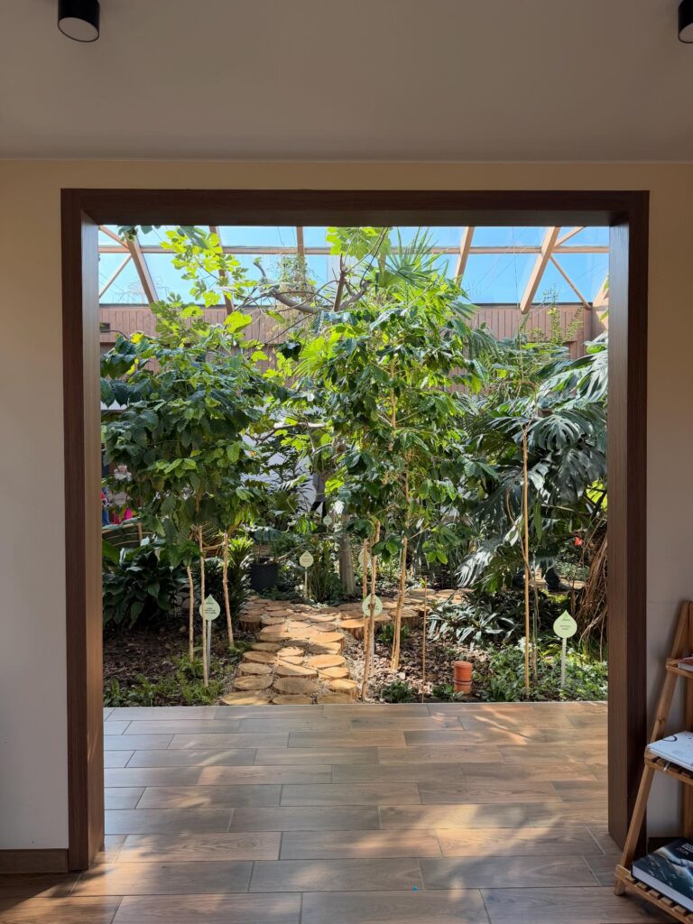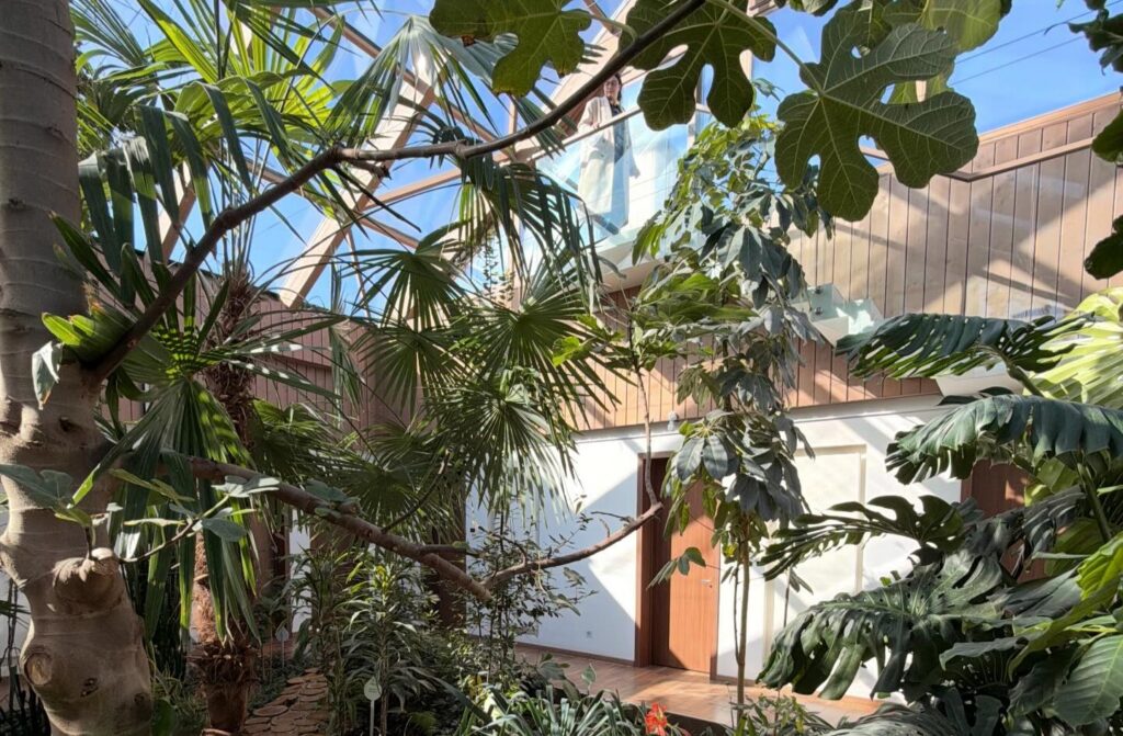 Просторный и светлый коттедж работает на солнечных батареях. Здесь можно сфотографироваться рядом с роскошными тропическими растениями, устроить праздник в банкетном зале на 30 человек, а также провести время на зеленой крыше с панорамным видом на экопарк.