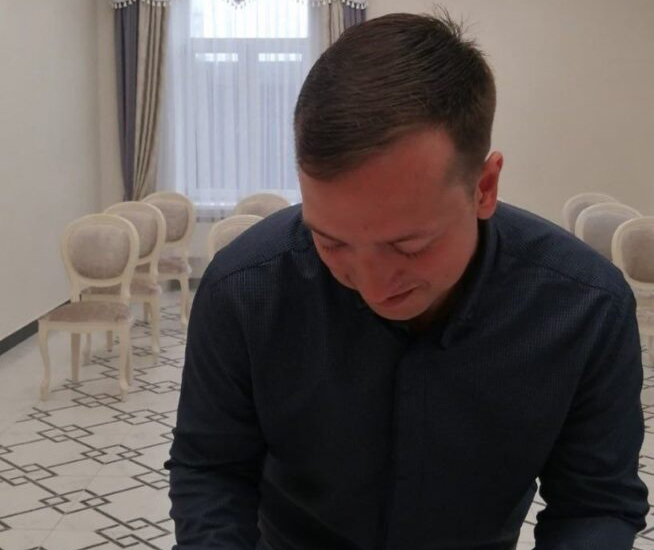 Начальник отдела ЗАГСа Наталья Белоус торжественно вручила отцу два свидетельства о рождении: