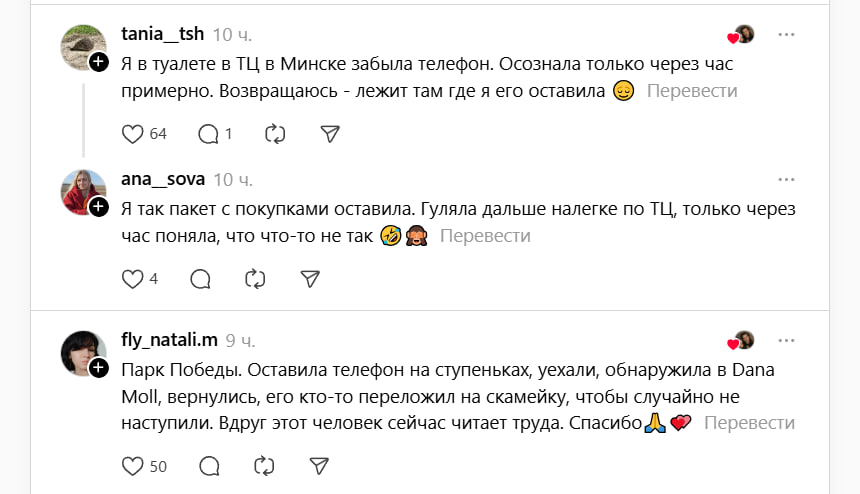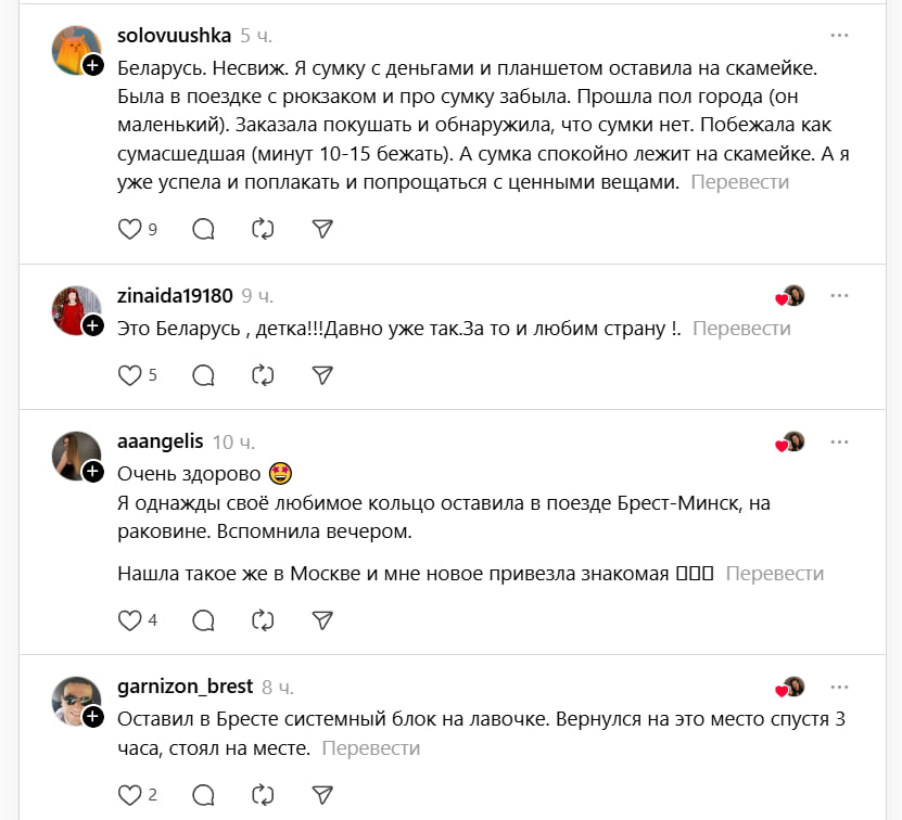 Десятки других пользователей начали массово делиться своими похожими историями о том, как в Беларуси находят и возвращают потерянные вещи.