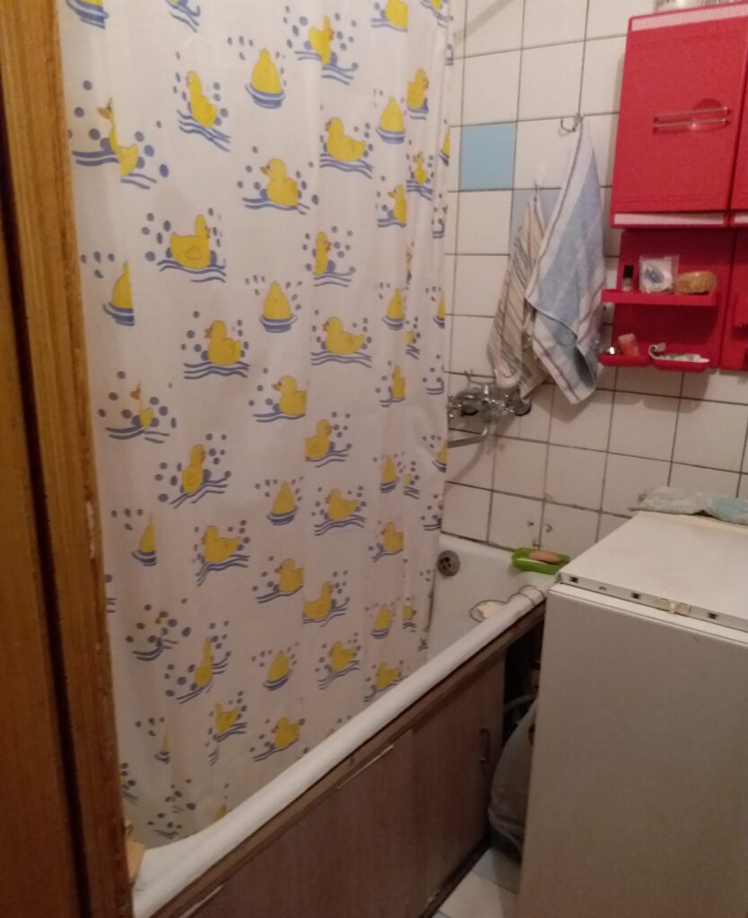 В квартире имеется вся необходимая мебель, что компенсирует долгое отсутствие ремонта. Потертый пол, пожелтевшие обои, черные швы между плиткой в ванне, устаревшая техника — словом, обычный ночной кошмар эстета. Но если внешнее убранство для арендатора не препятствие, то в целом, в квартире вполне можно жить.
