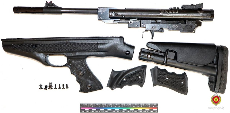 Пневматический пистолет был изъят и направлен в Гродненский межрайонный отдел Государственного комитета судебных экспертиз. Эксперты установили, что оружие относится к категории пневматического, предназначено для стрельбы несферическими пулями калибра 4,5 мм. Средняя дульная энергия пистолета составила 7,4 Дж — это достаточно, чтобы причинить серьёзные повреждения.