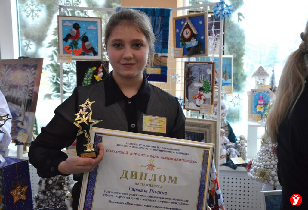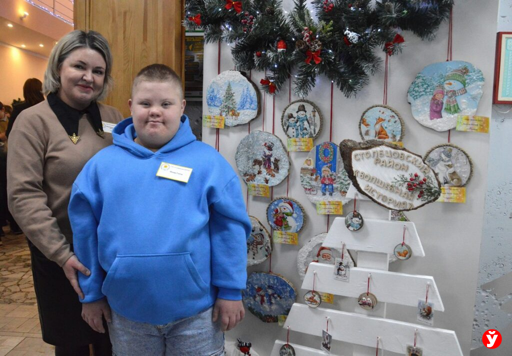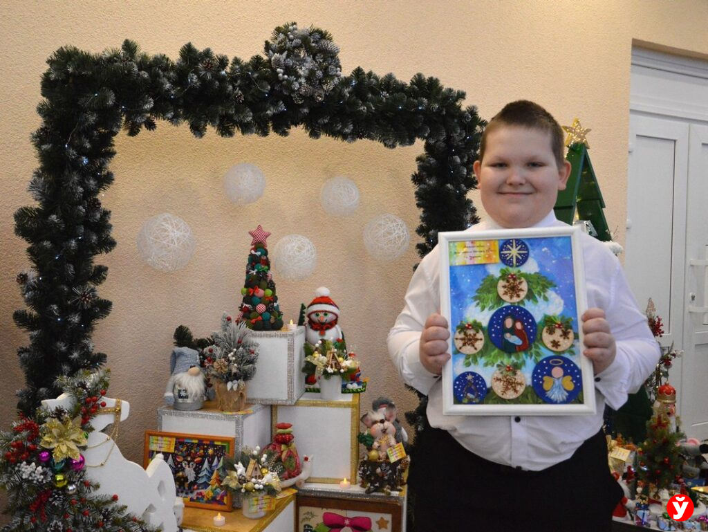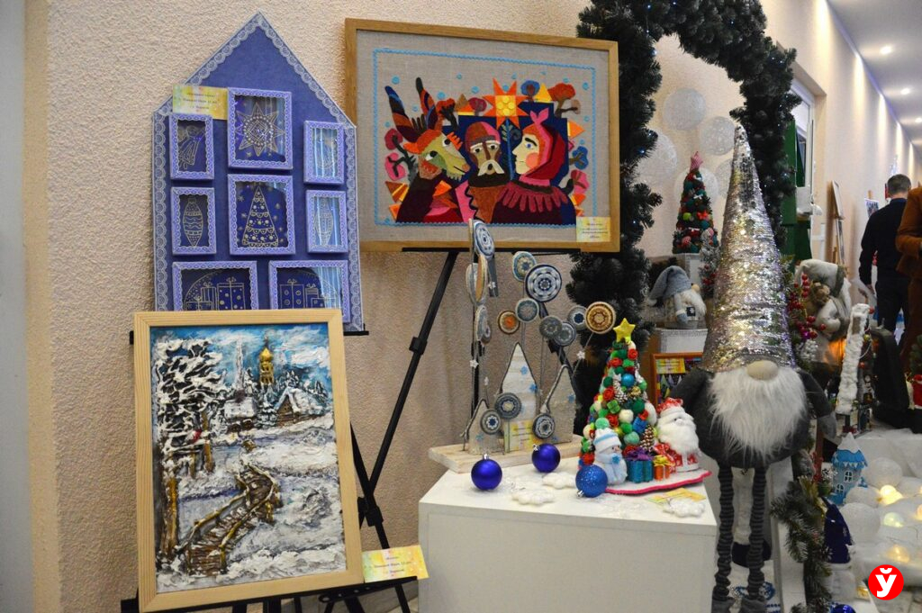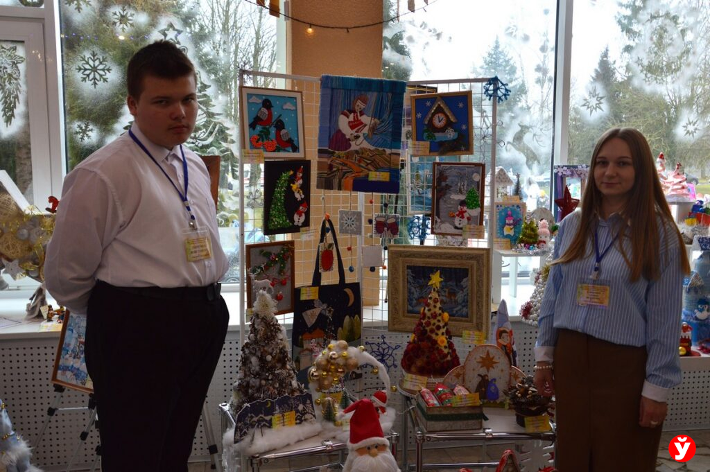 Праздничное настроение на выставке создавали представители ЦКРОиРа г. Червеня. Они к фестивалю изготовили новогодние сувениры. Все выполнены в разных техниках: квиллинг, смешенная техника, аппликация, торцевание. Вооружившись бумагой, тканью, природными материалами, пенопластом участники креативили как могли. Готовится к фестивалю начали за полгода. И видно, что не зря. Воспитанники центра Михаил Ильюшонок и Никита Парфенчик стали призерами областного фестиваля.