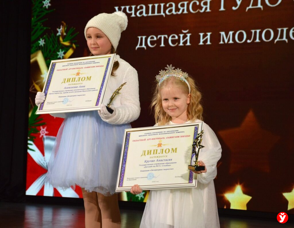 За творчество и креативность дипломы победителей, заслуженные статуэтки и наборы со сладостями учащимся вручили начальник главного управления по образованию Минского облисполкома Николай Башко и председатель Столбцовского райисполкома Андрей Атрушкевич.