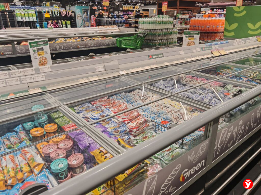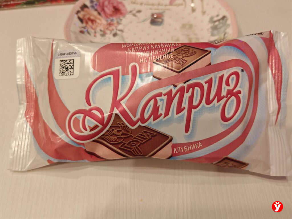 Бегать по магазинам в лютый мороз, когда даже волосы под шапкой мерзнут — так себе идея. Поэтому в поисках розовой новинки сделала ставку на гипермаркет «Грин», что на Каменной Горке — и он меня не подвел. Правда, в наличии оставалось всего три «Капризных» мороженого с клубничным вкусом.
