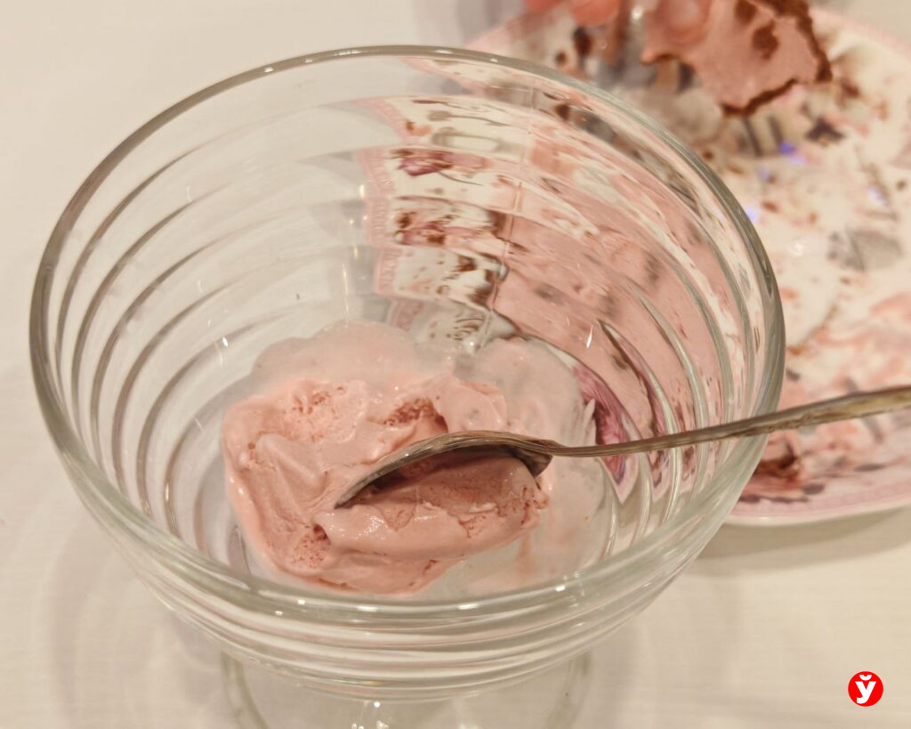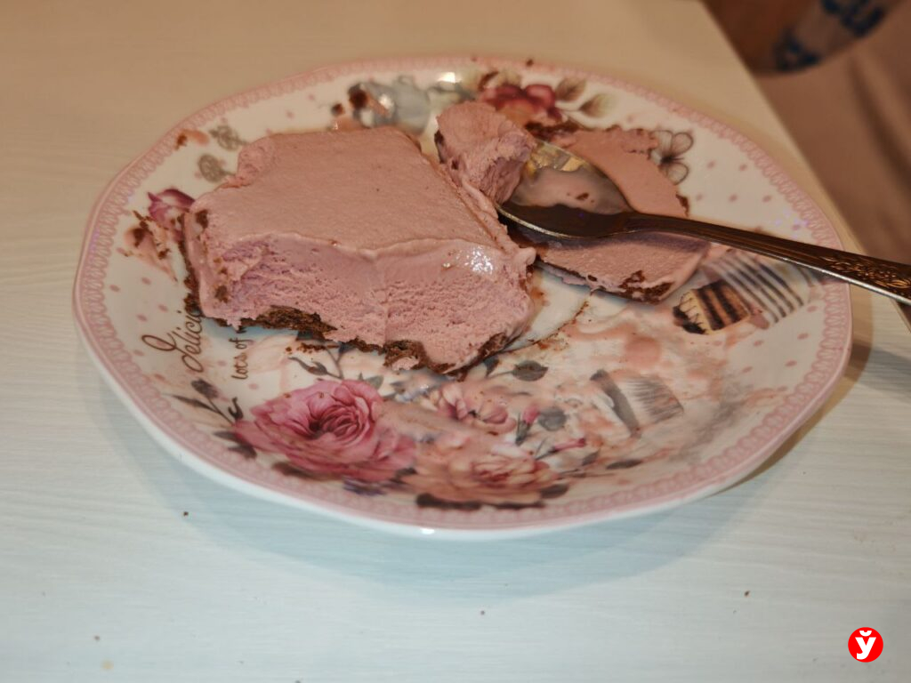 Мне все-таки самого мороженого показалось маловато, а печенья — много. Словила себя на мысли, что для лета это, пожалуй, «тяжелый вариант»: после такого лакомства однозначно захочется пить. Зато в холодное время года, когда нужно больше кушать, чтобы согреться — почему бы и нет? Получился интересный контраст: сладкий, ягодный вкус словно пытается пробиться сквозь плотный, сытный «панцирь» горьковатого печенья.