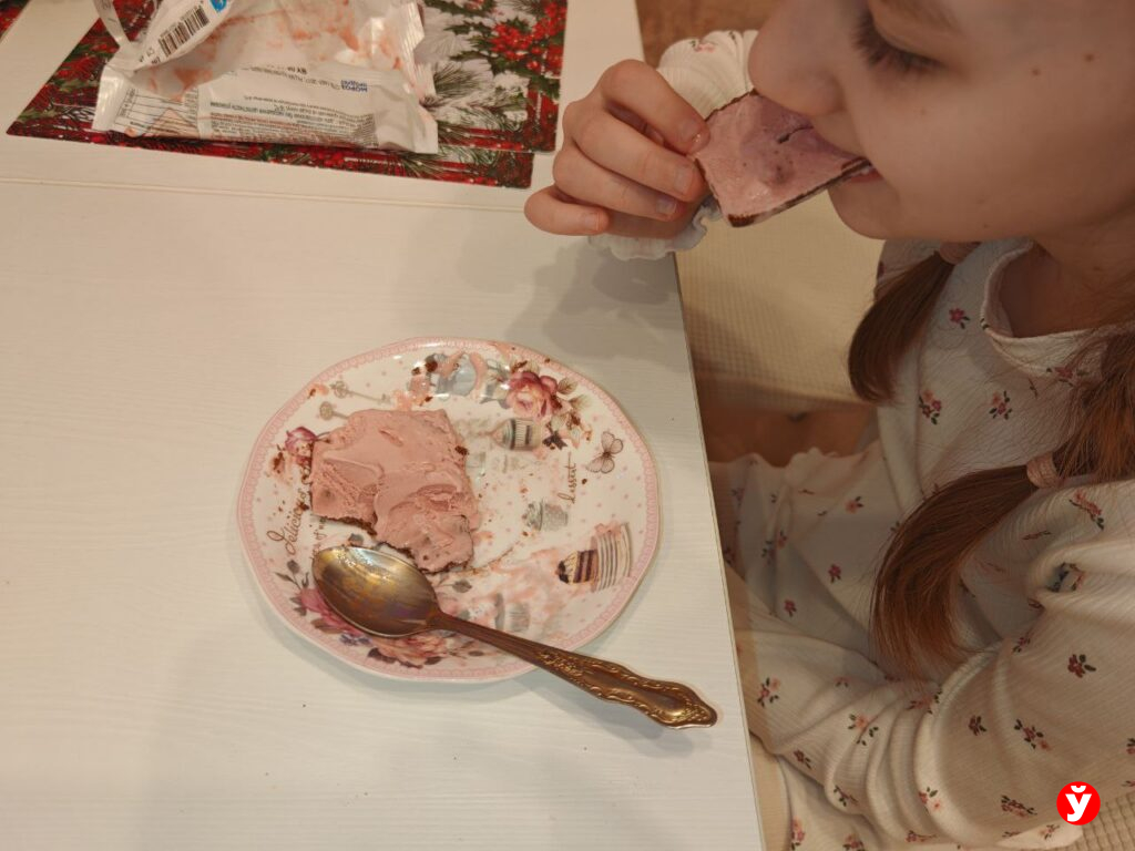— Слой печенья такой толстый: кажется, что мороженого совсем мало! — недовольно пробормотала дочка. — Интересно, а на вкус оно какое?