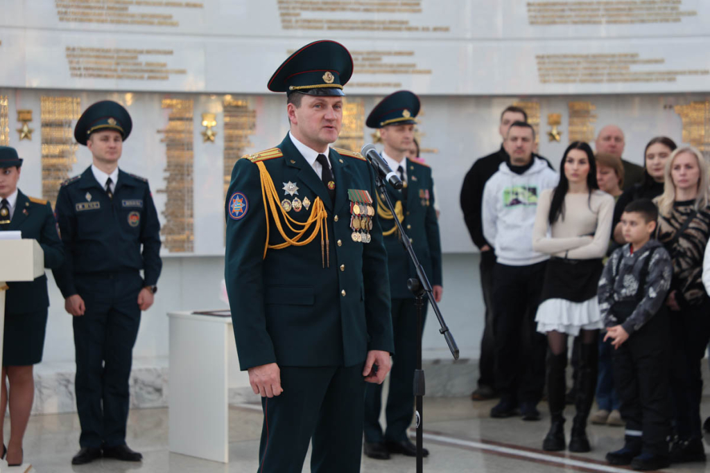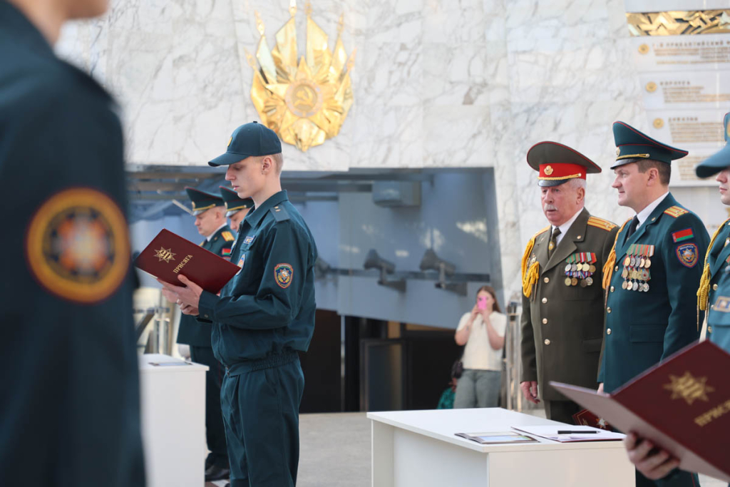 В музее истории Великой Отечественной войны, в канун профессионального праздника — Дня спасателя, состоялась торжественная церемония принятия присяги молодыми работниками, которые продолжат службу в подразделениях МЧС Минской области.