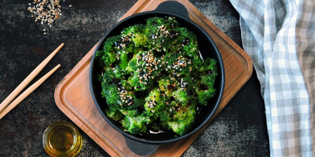 Простая жареная брокколи превращается в главное блюдо стола благодаря насыщенному сладко-соленому соусу. Имбирь дает приятную остроту, а кунжут — ореховые ноты.