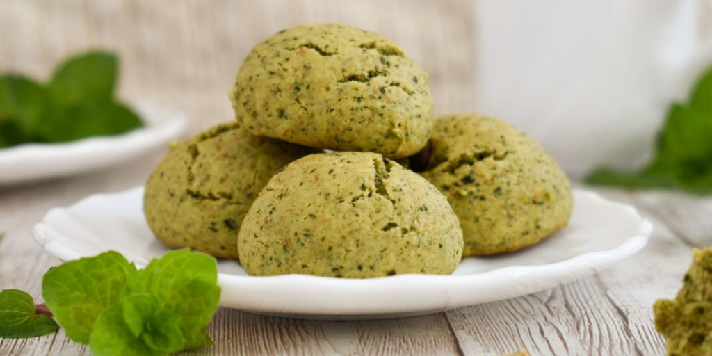 Завершить трапезу можно необычным десертом — рассыпчатым печеньем с ярким цветом и необычным вкусом мяты. Оно не такое приторное, как классическая выпечка, и прекрасно сочетается с чашкой травяного чая или черного кофе.