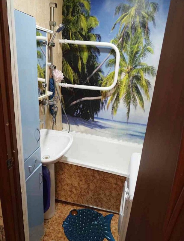 Первую квартиру нашли на торговой онлайн-площадке. Двушка находится в двухэтажном многоквартирном жилом доме 1996 года постройки в микрорайоне вокзала. Продавец заявляет: «Без ремонта, но пригодная для жилья».