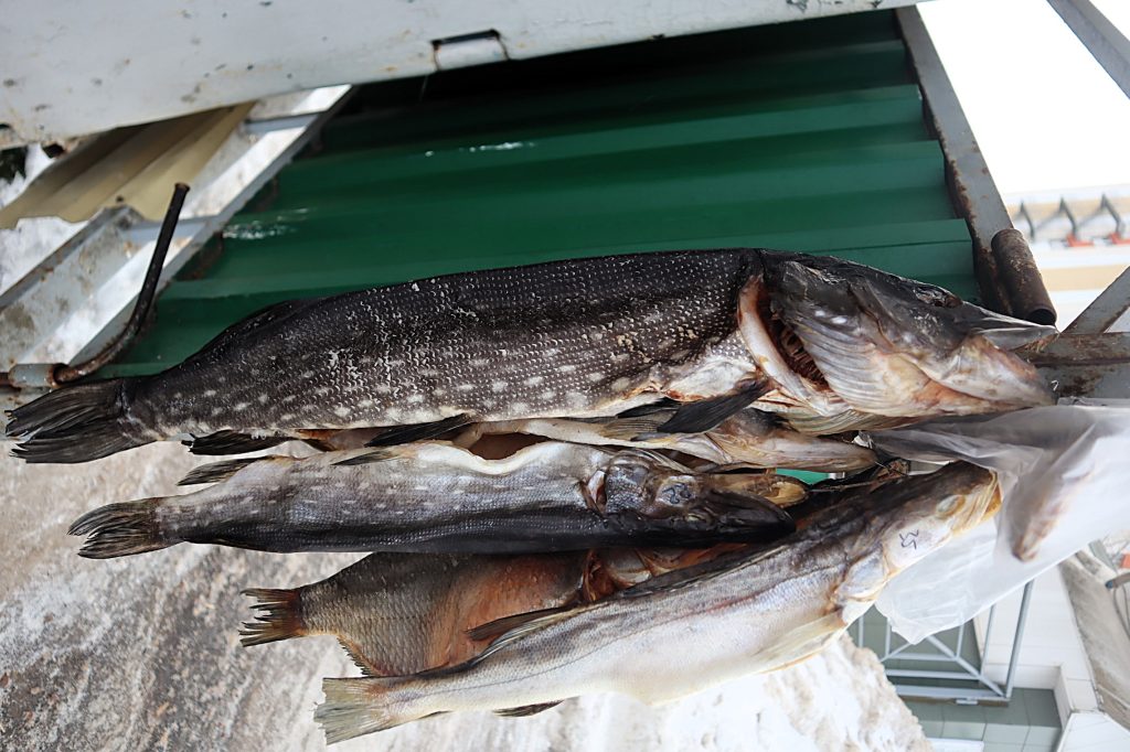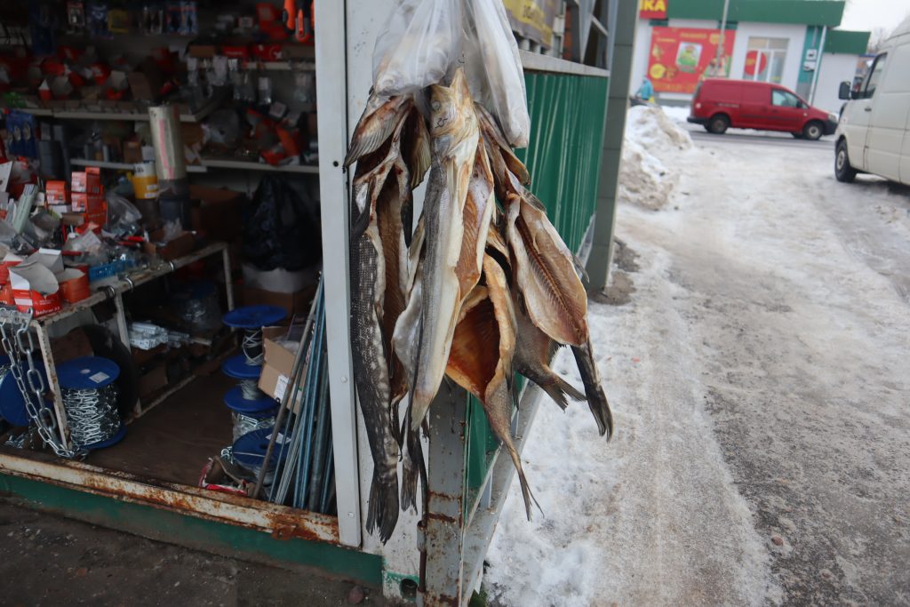 Сушеная рыба, которая была поймана на зимней рыбалке в этом сезоне, на рынке тоже в ассортименте.