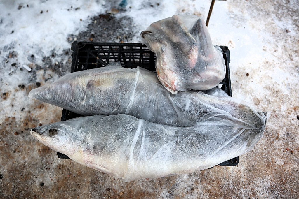 Мороженой рыбы на рынке – большой ассортимент в крытом павильоне. В зависимости от толщины кошелька можно купить чего душе угодно – от аргентины по 7 рублей 95 копеек за кило до норвежской форели стоимостью 45 рублей 50 копеек за килограмм.