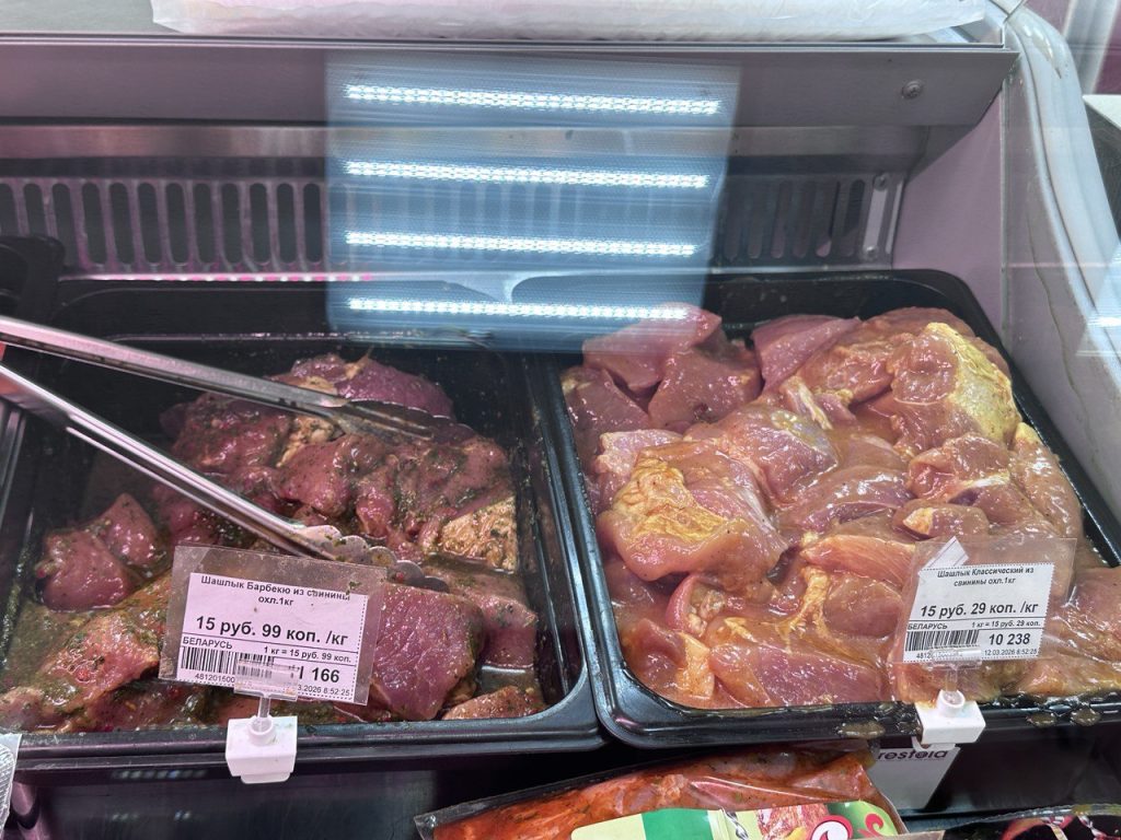 В другом магазине цены на шашлык «Южный» — 18,66 рубля за кг, «Эскалоп святочный» — 19,65, а «Шейка по-техасски» обойдётся в 22,03.