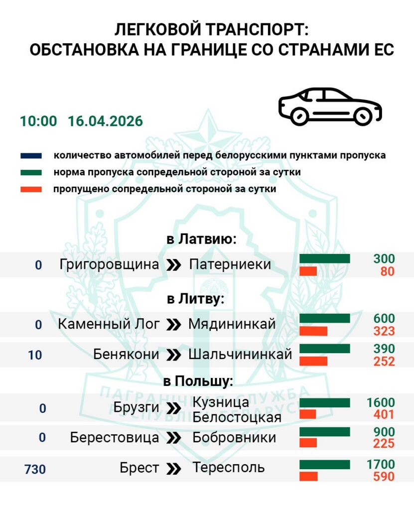 За последние сутки польская сторона оформила около 34% легкового транспорта от установленной нормы пропуска.