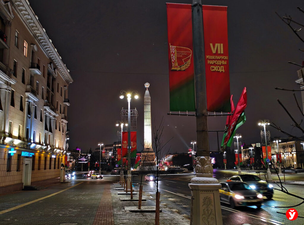 Оформление напоминает жителям и гостям столицы о значимости события, которое соберёт делегатов со всей страны для обсуждения стратегических направлений развития Беларуси.