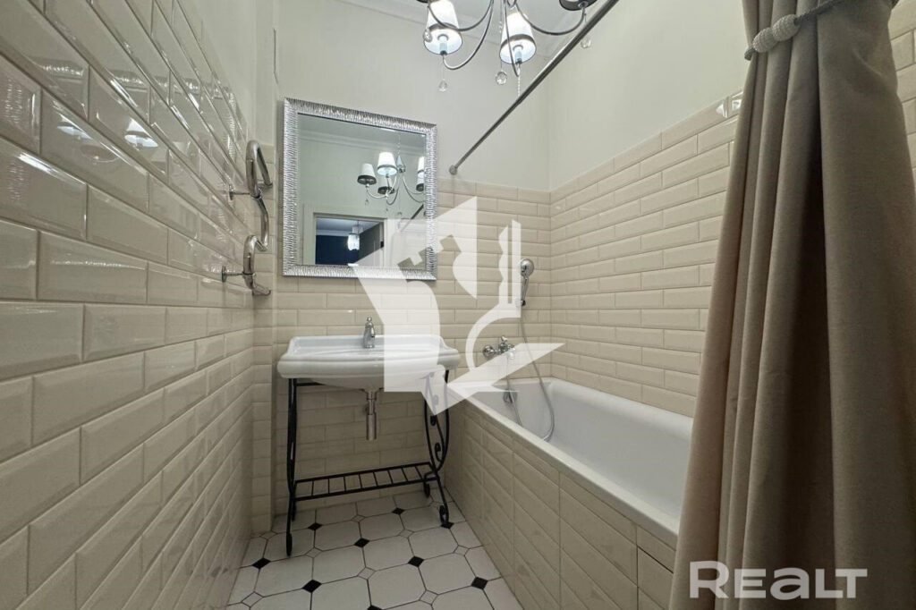 В Заводском районе Минска сдается уютная симпатичная двушка сталинского типа. Квартира привлекает внимание не только высокими трехметровыми потолками, но и интересными дизайнерскими решениями в духе эклектики — каждая зона оформлена под определенный стиль. В жилых комнатах можно увидеть детали классицизма, в кухне — оттенки лофта, а в ванной предыдущий стиль грамотно скомбинирован с деталями арт-деко.