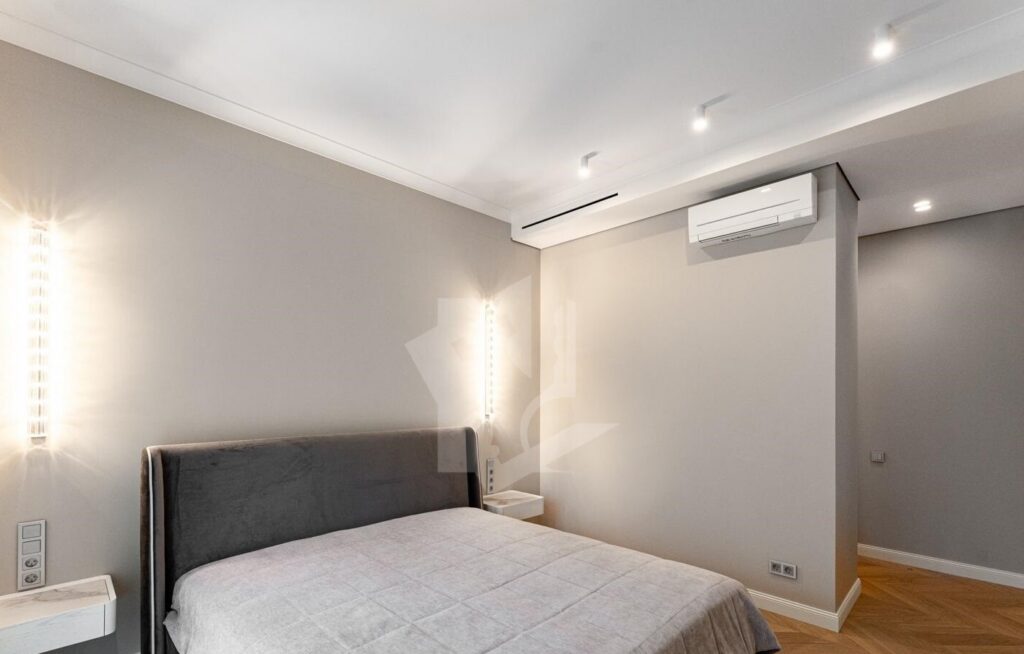 Дороговизну аренды владельцы объясняют недешевыми материалами и встроенной техникой. В жилых зонах лежит паркет из натурального дерева, в ванных комнатах, прихожей и постирочной — керамогранит с системой теплого пола. Также в каждой комнате есть приточная вентиляция и кондиционеры.