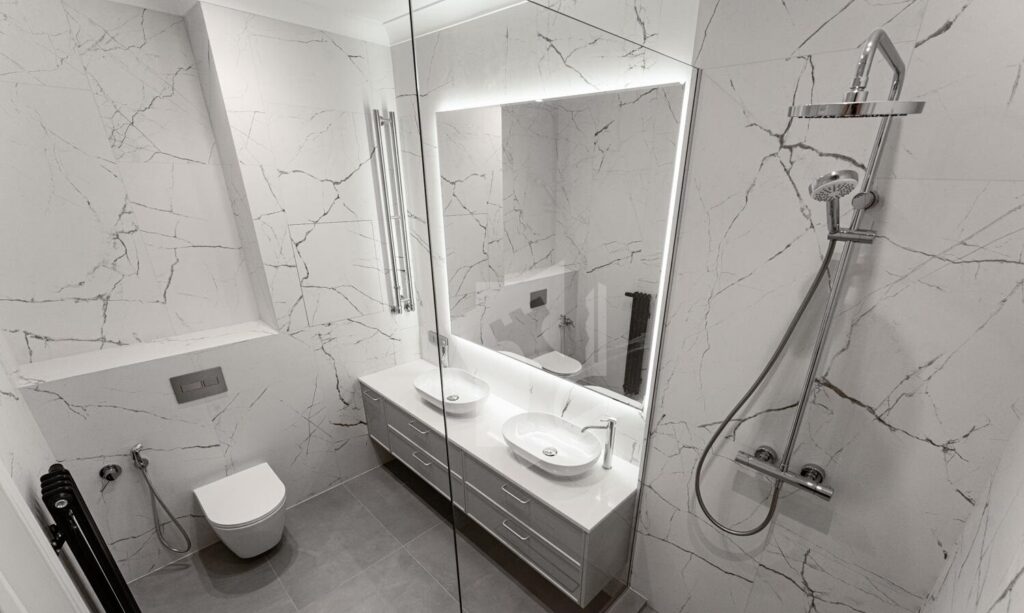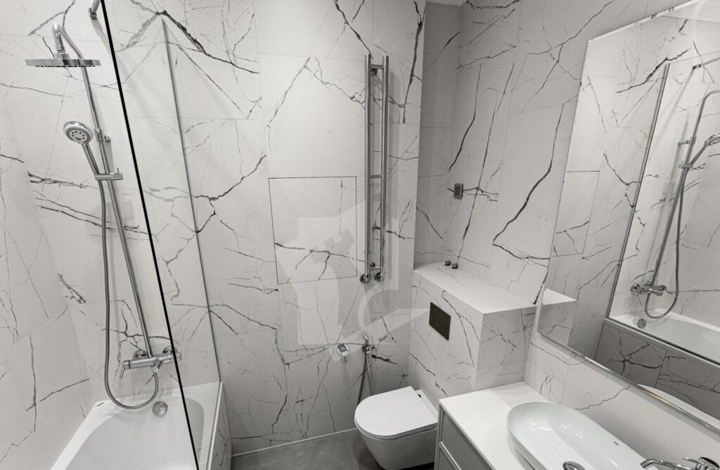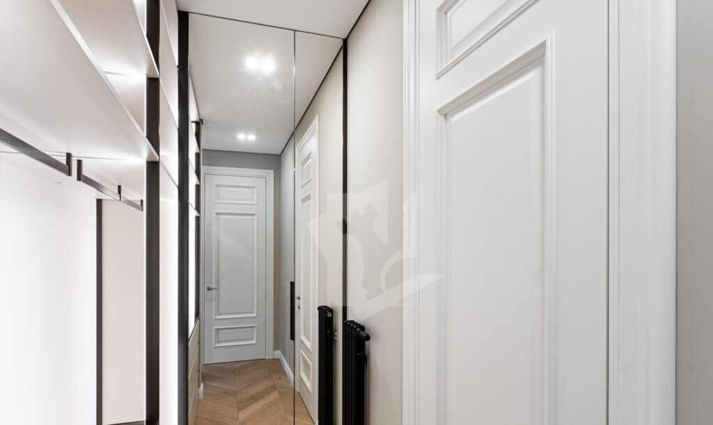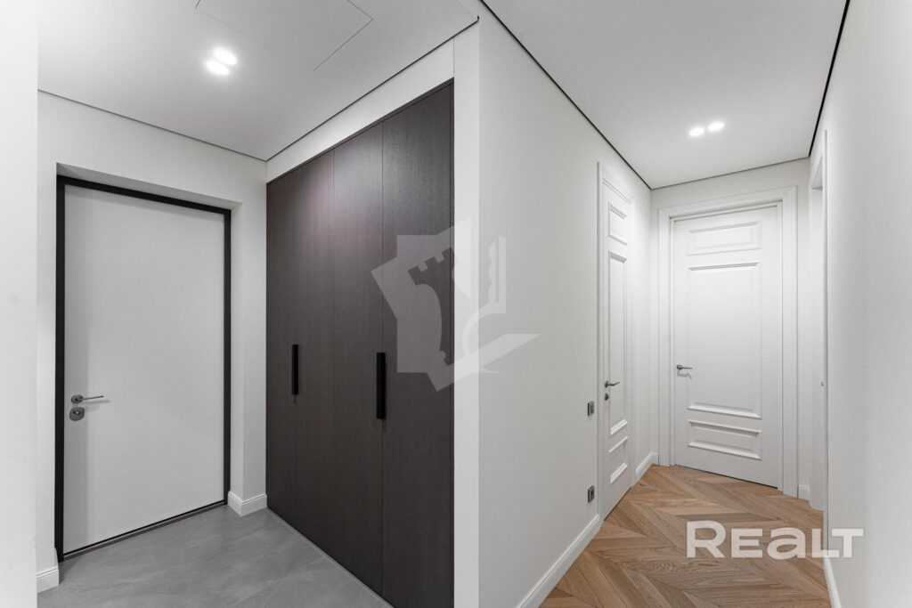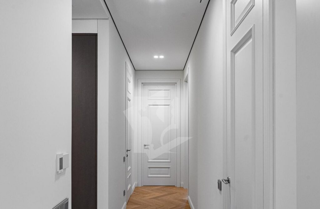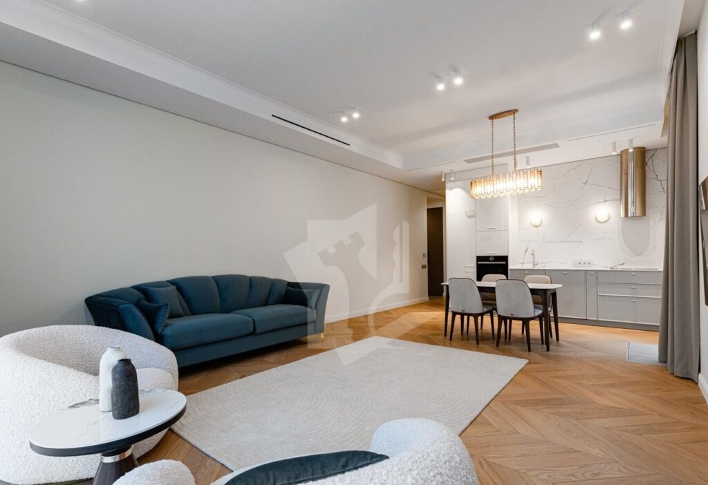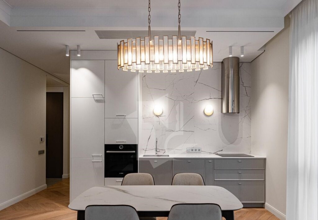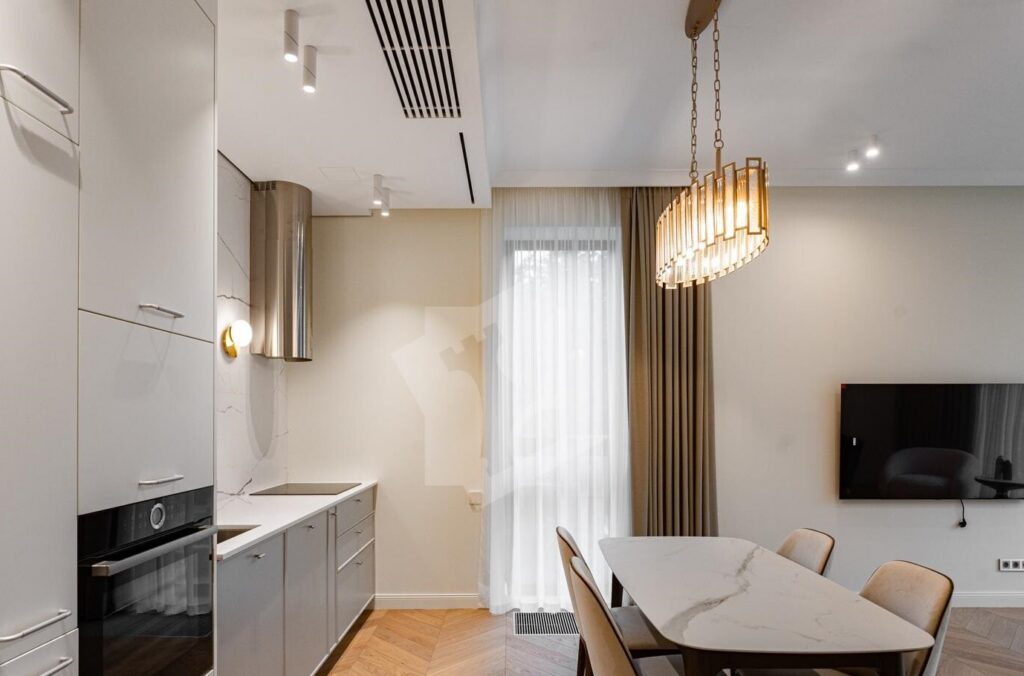 Квартира полностью оснащена встраиваемой техникой премиум-уровня: варочная панель, духовой шкаф, вытяжка, посудомоечная машина, встроенный холодильник, стиральная и сушильная машины, современный телевизор с интеллектуальными функциями.