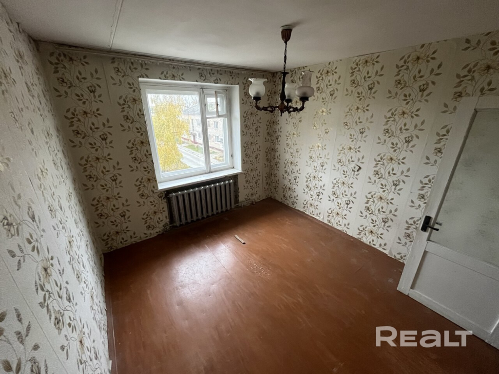 Рядом расположены школа, детский сад, в общем, вся городская инфраструктура, а в пешей доступности — река Березина. Продавец рассматривает обмен на однокомнатную квартиру в Минске или Минском районе с доплатой.