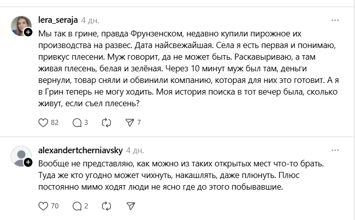 — Вообще не представляю, как можно из таких открытых мест что-то брать. Туда же кто угодно может чихнуть, накашлять, даже плюнуть. Плюс постоянно мимо ходят люди, неясно где до этого побывавшие.