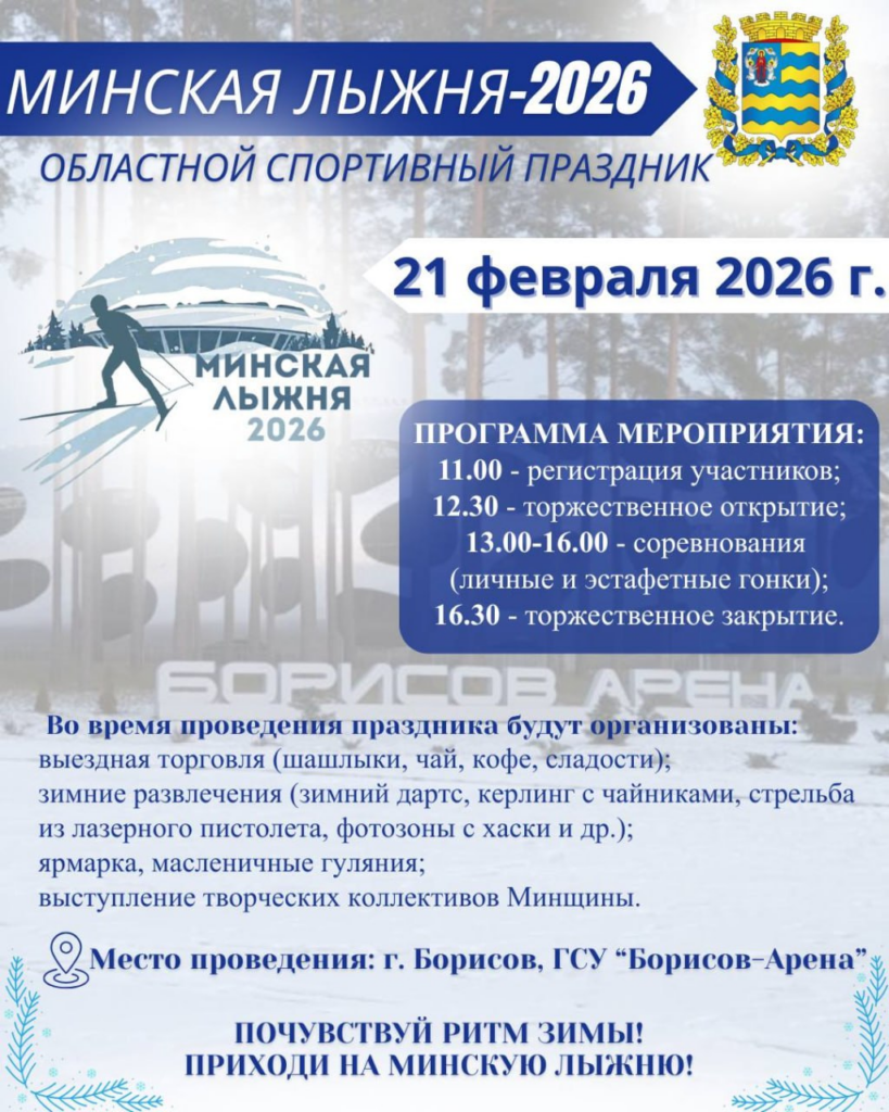 Уже в эту субботу, 21 февраля, на базе «Борисов-Арены» состоится областной спортивный праздник «Минская лыжня-2026». В этом году мероприятие впервые пройдет на этой площадке, собрав любителей лыжного спорта со всего региона.