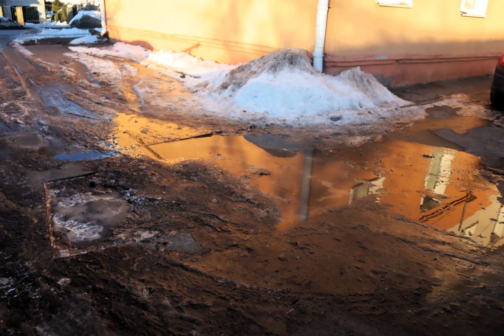 Раскапывали землю на зелёной зоне возле дома. Поднимали асфальт и на дороге, которая ведёт с улицы во двор. Место работ обносили турникетами. Потом, когда выпал снег, турникеты убрали, а выбоины в асфальте оставили. Теперь, по словам Ларисы, в этом месте можно оставить и подвеску своей машины.