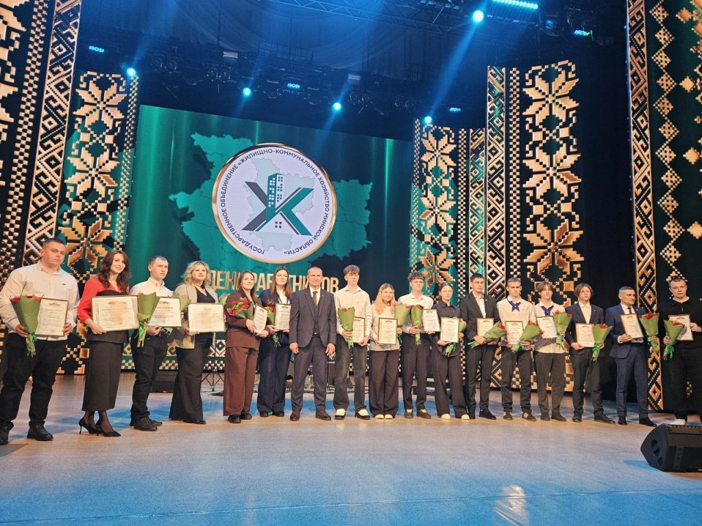Генеральный директор Государственного объединения «Жилищно-коммунальное хозяйство Минской области» Юрий Кукашук пригласил на сцену победителей республиканского конкурса профессионального мастерства «SUPERПрофи-2025».