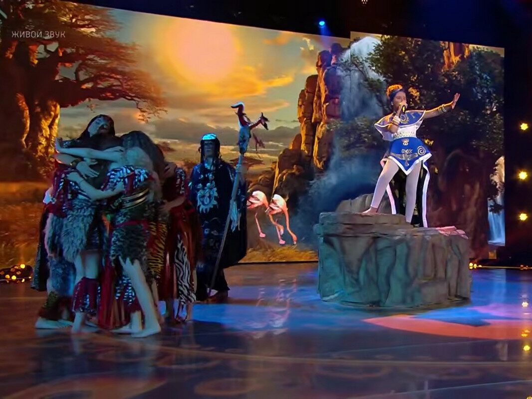 На сцене ожили композиции из знаменитых мультфильмов и фильмов. По признанию Алексея Воробьева, он сам вдохновился классикой — артист предстал в образе Волка из «Ну, погоди!».