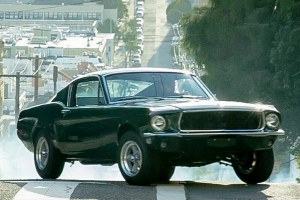 Если рынок подарил Мустангу популярность, то кино наделило его бессмертием. В 1968 году на экраны выходит «Буллит» с легендарной сценой автомобильной погони, которая до сих пор считается эталоном. Стив МакКуин за рулем темно-зеленого Mustang GT Fastback не произносит громких фраз. Он просто ведет машину по улицам Сан-Франциско так, будто это не съемка, а реальная жизнь. И в какой-то момент становится ясно: зрители смотрят не на актера, а на автомобиль.
