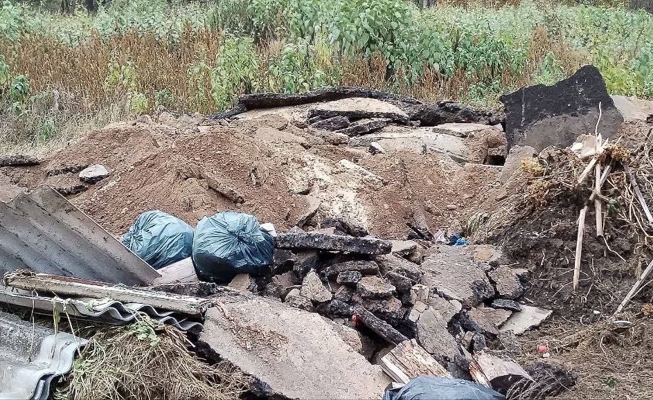 О проблеме поделился в соцсетях местный житель агрогородка. По его словам, на участке происходит незаконное захоронение отходов, среди которых — остатки плитки, куски асфальта и другие строительные материалы.