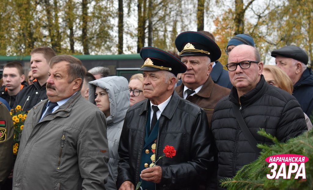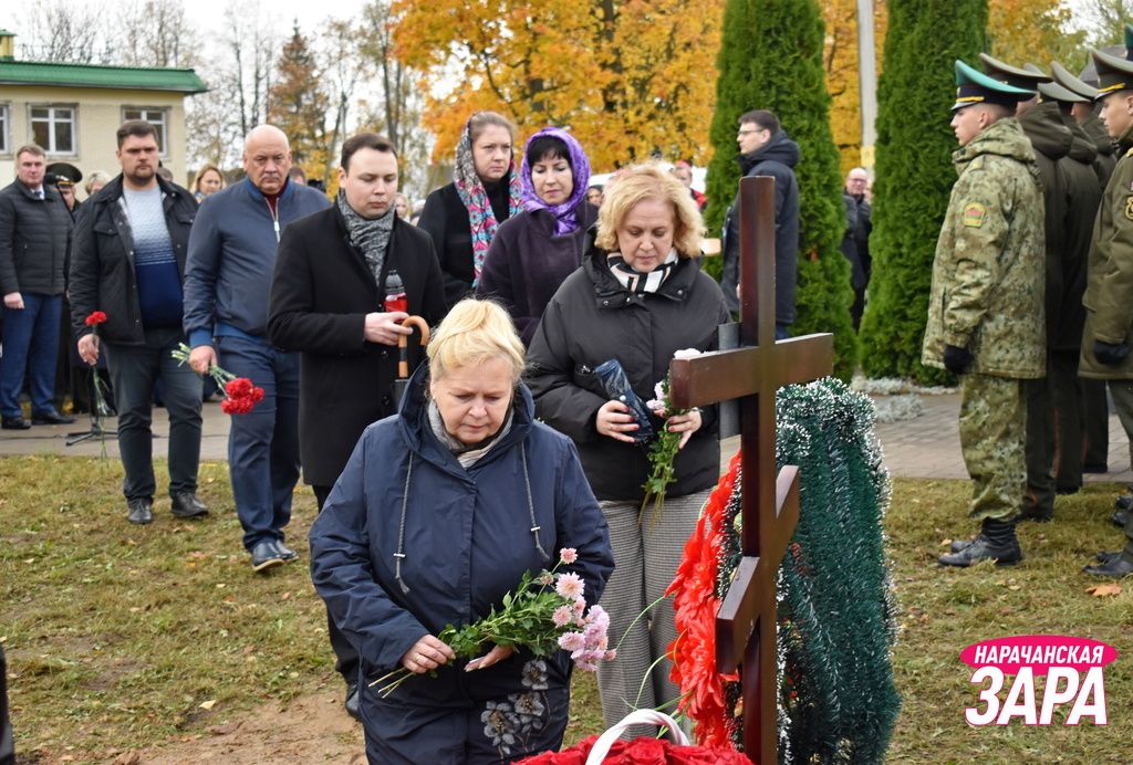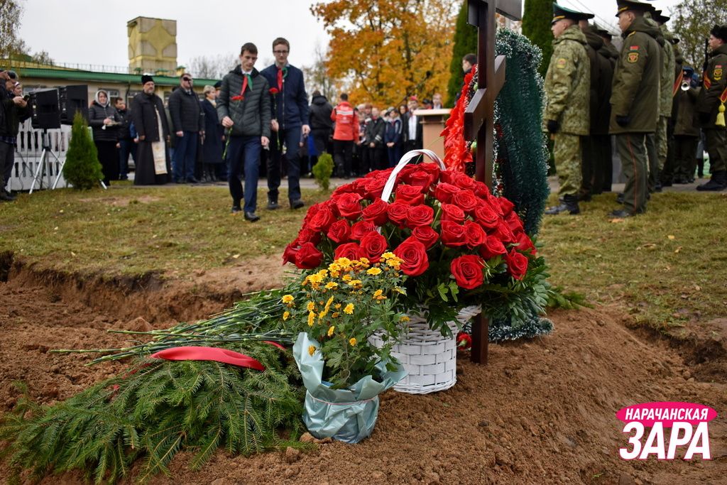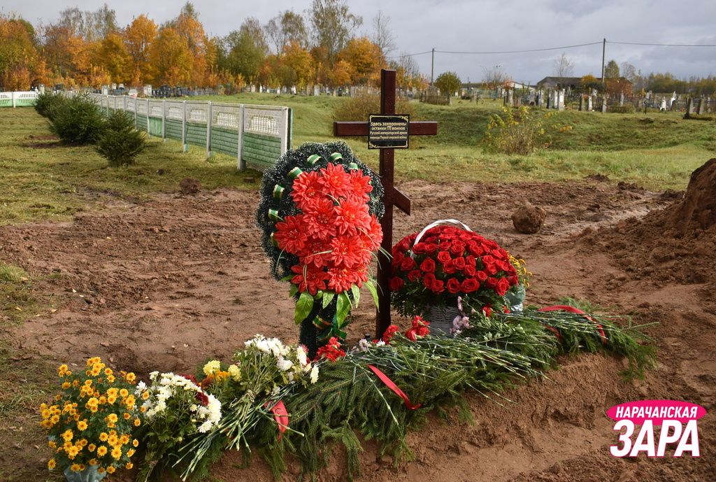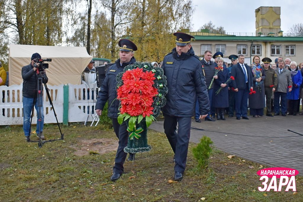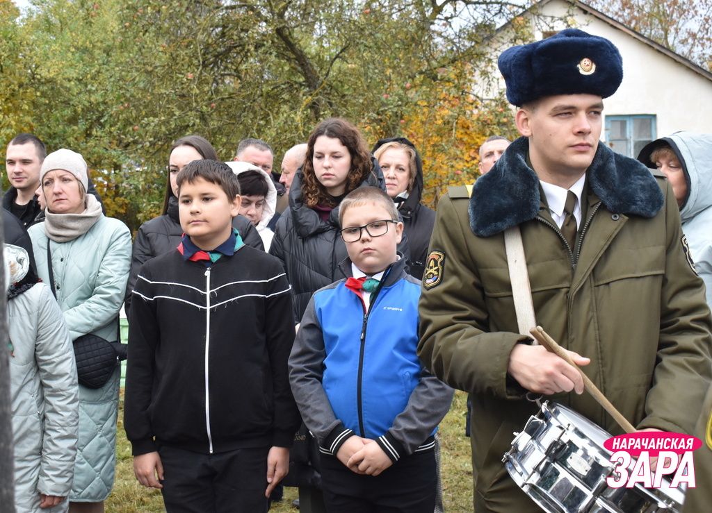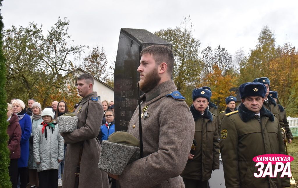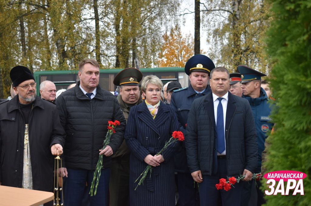 Памятный знак освятил иерей храма Преображения Господня в Занарочи Анатолий Митько. К знаку присутствующие возложили гирлянду и цветы. Память погибших воинов почтили минутой молчания.