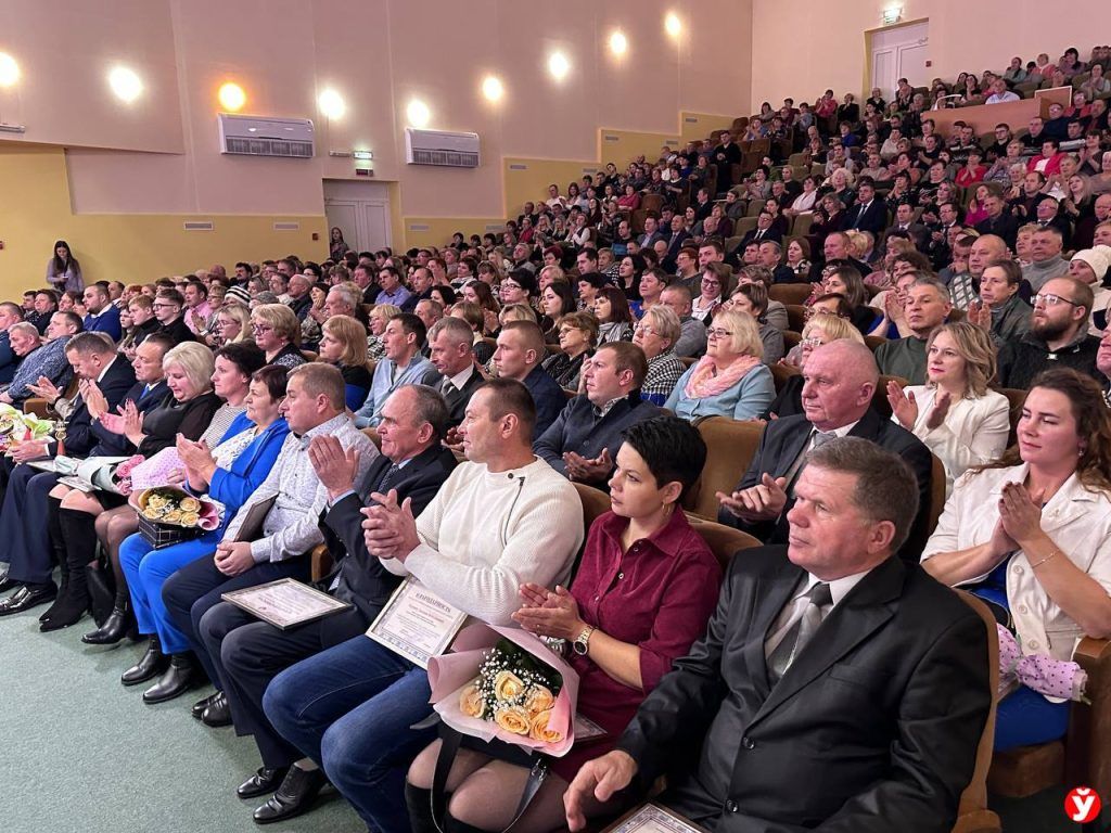 В концертном зале не было свободных мест. В центре внимания сегодня руководители предприятий, члены коллективов, почетные гости. В их числе руководство Вилейского района во главе с председателем Вилейского райисполкома Анатолием Завацким.